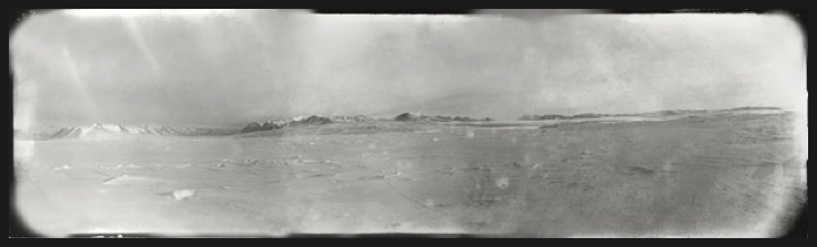 Scott, R F Antarctic , Sept. 25, 1911. A view from the sea ice showing, from the left, the Blue Glacier, the Ferrar Glacier and the Kukri Hills; the Kukri Hills to Victoria Lower Glacier; and the Victoria Lower Glacier to Cape Roberts.
