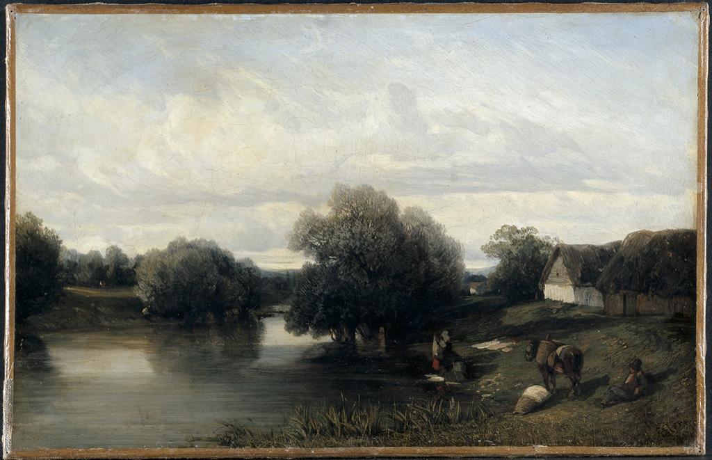 Camille Flers; Cottage by the River with Washerwoman; 1835; oil on fabric; 29.8 x 46.1 cm; The Cleveland Museum of Art