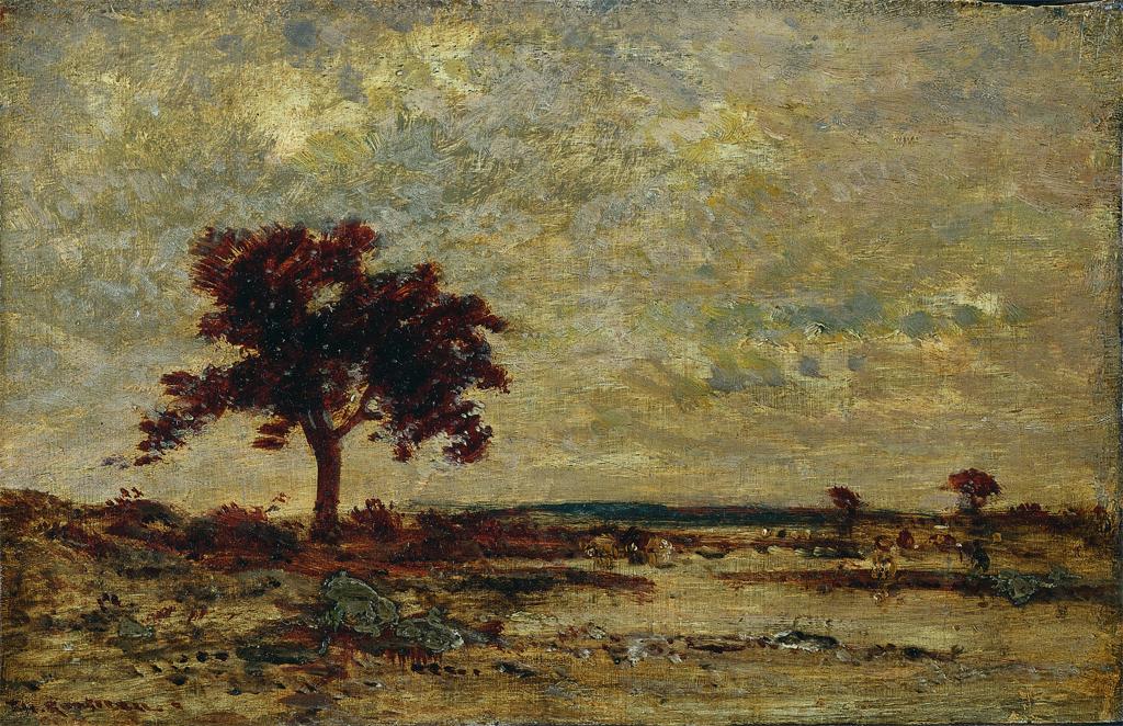 Théodore Rousseau; Leaving the Forest, Fontainebleau: Setting Sun; 1851; oil on fabric; 109.1 x 130.2 cm; The Cleveland Museum of Art