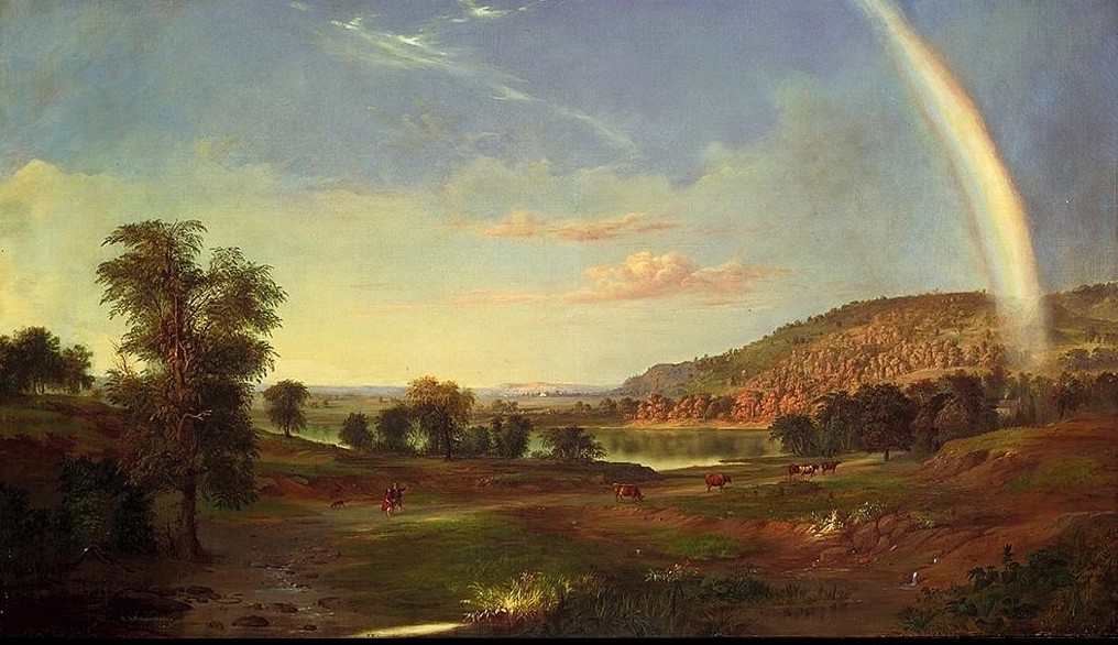 Robert S. Duncanson, Landscape with Rainbow , 1859 , oil on canvas, 30 1/8 x 52 1/4 in. (76.3 x 132.7 cm.)