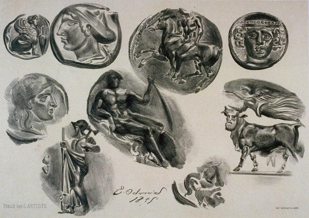 Eugène Delacroix; Feuille de neufs medailles antiques; 1825; lithograph; 22.2 x 30.9 cm; Fine Arts Museum of San Francisco