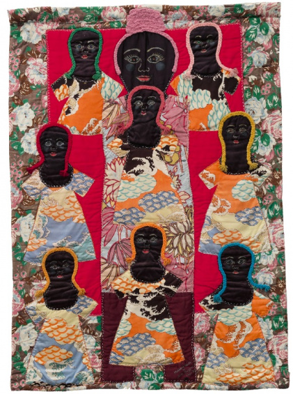 Faith Ringgold, Mother’s Quilt, 1983. Painted, appliqued, and embroidered fabric with sequins, 58 × 43 ½ in. (147.3 × 110.5 cm). Collection Ed Bradley & Patricia Blanchet.